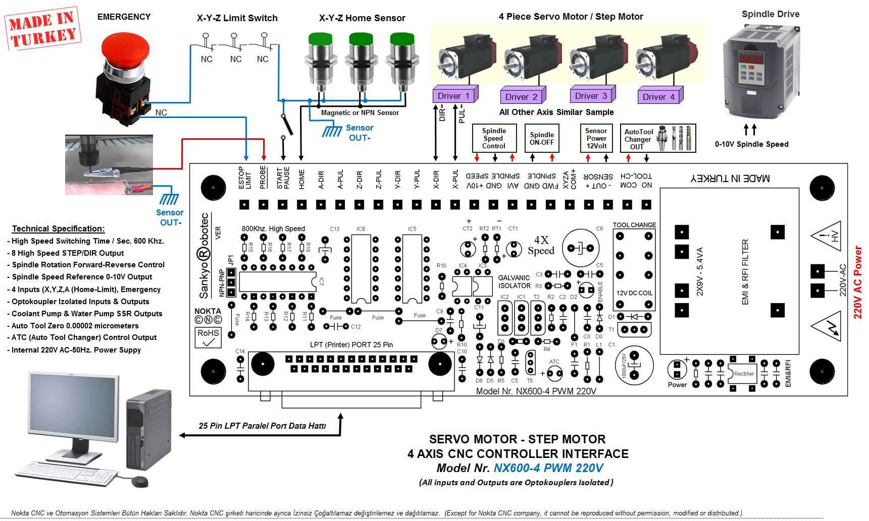 4 EKSEN CNC KONTROL KARTI (Model: NX600-4)